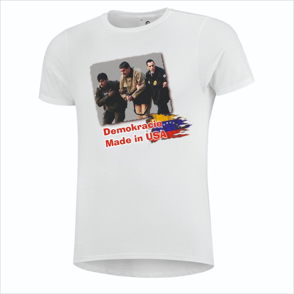 Aktuálnost motivu souvisí se současným vývojem ve Venezuele, kde v posledních letech zesílil politický a ekonomický tlak ze strany USA. Ten zahrnoval mimo jiné omezení obchodu s ropou, sankce a zásahy do vnitropolitického vývoje země. Tyto události znovu otevřely debatu o tom, kde končí podpora demokracie a kde začíná nátlak na suverenitu států. Motiv na tričku reaguje také na mediálně sledované události kolem únosu venezuelského prezidenta Nicoláse Madura.